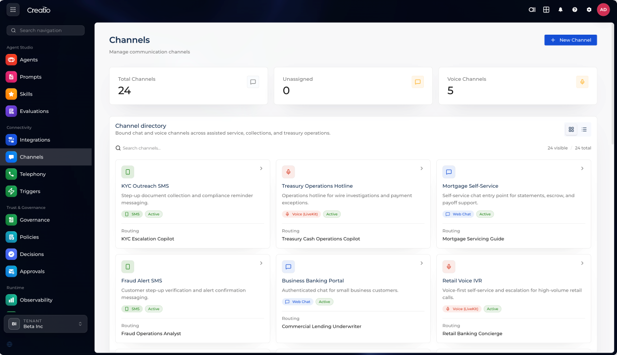 Each channel is configured centrally, with routing rules and agent assignments managed from one place.
