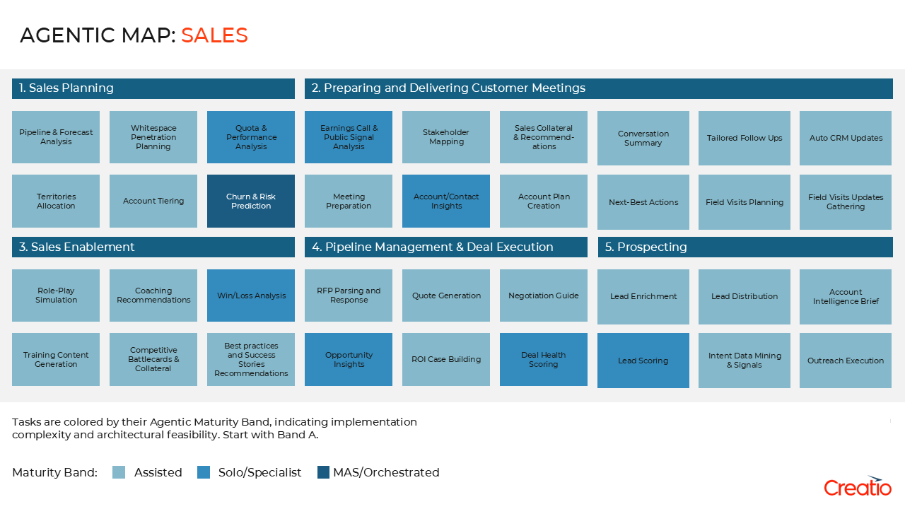- Explore how Creatio's agentic capabilities evolve as sales needs grow