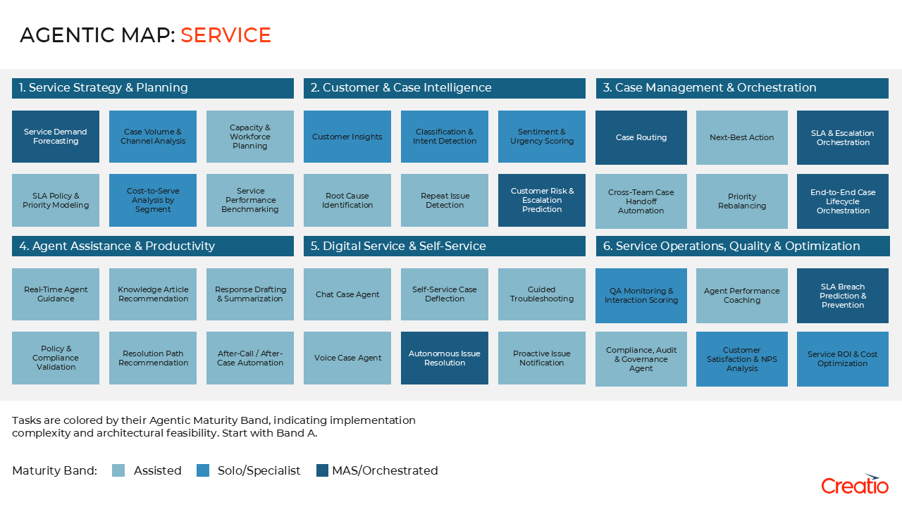 - Explore how Creatio's agentic capabilities evolve as service needs grow