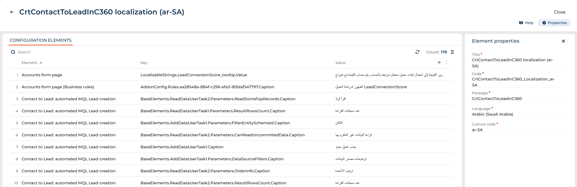 Package-level localization management. You can now simplify multilingual development by using the new "Localization" type of configuration schemas to centrally observe localizable resources within a package. Packages that contain localizable resources automatically include a "Localization" type schema, which consolidates all localizable values for a specific language and provides a centralized, read-only view in the Localization Designer. "Localization" type schemas are generated automatically when localizable resources are added to a package and are also displayed for all existing packages after upgrading to version 8.3.3. Each element represents a single language and enables developers to review translations in one place, increasing transparency of localization content, simplifying translation tracking and maintenance, and improving support for multilingual development and delivery workflows.