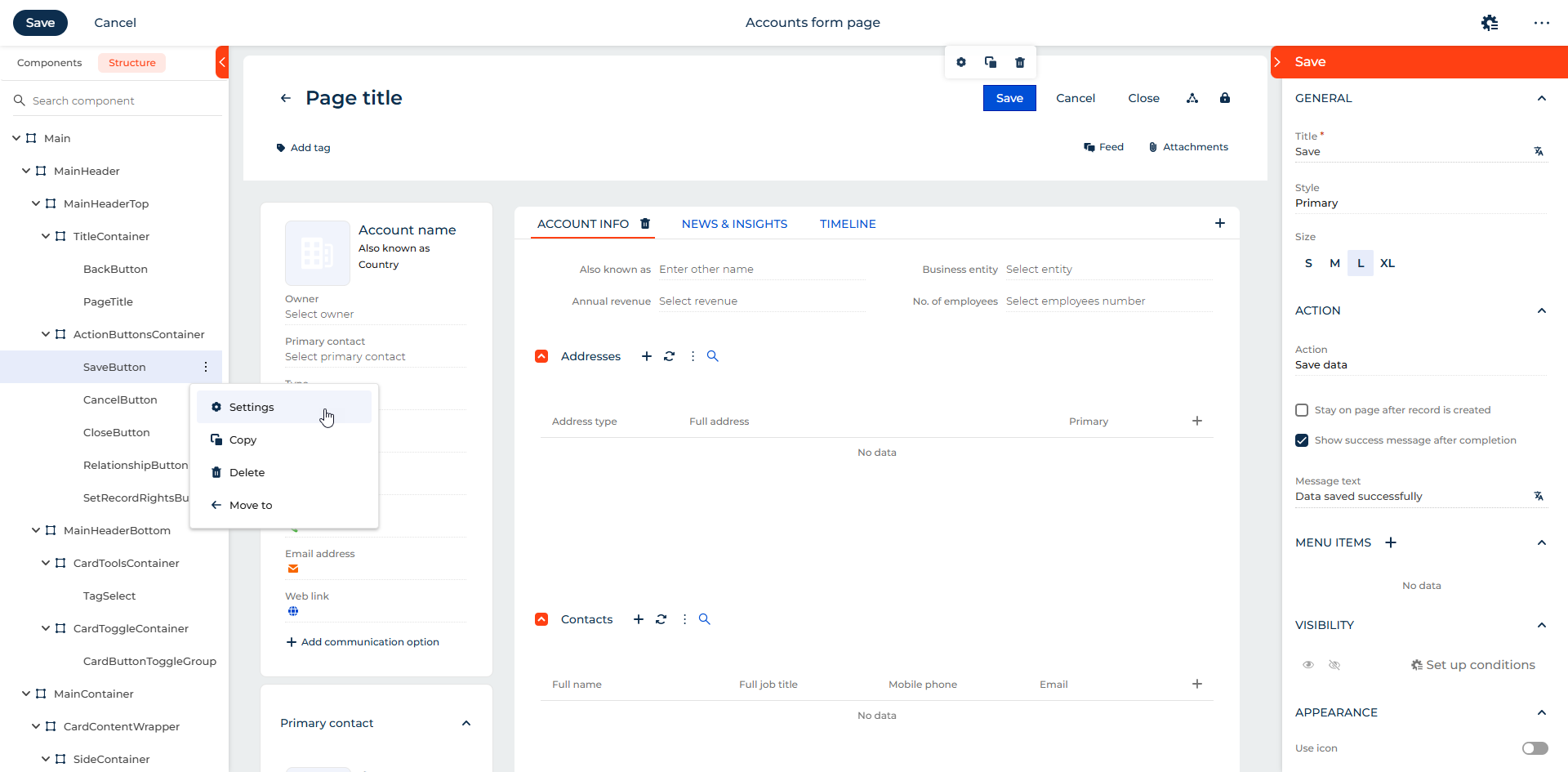 Hierarchical page structure view. You can now design and maintain complex page layouts more efficiently using a hierarchical structure view of page elements in the Freedom UI Designer and Freedom UI Mobile Designer. The new Structure tab provides clear visibility into parent-child relationships, enables search and navigation across elements, and simplifies layout management and validation of structure rules.