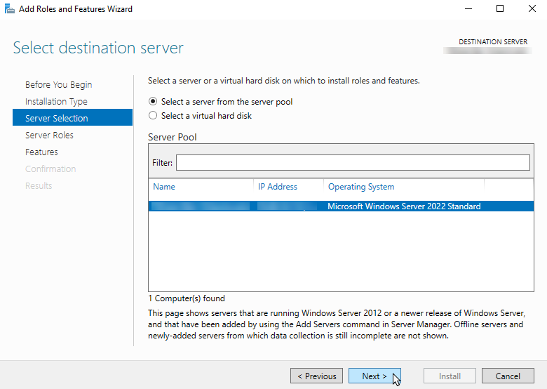 Select the destination server from the available server pool and click Next (Fig. 4).